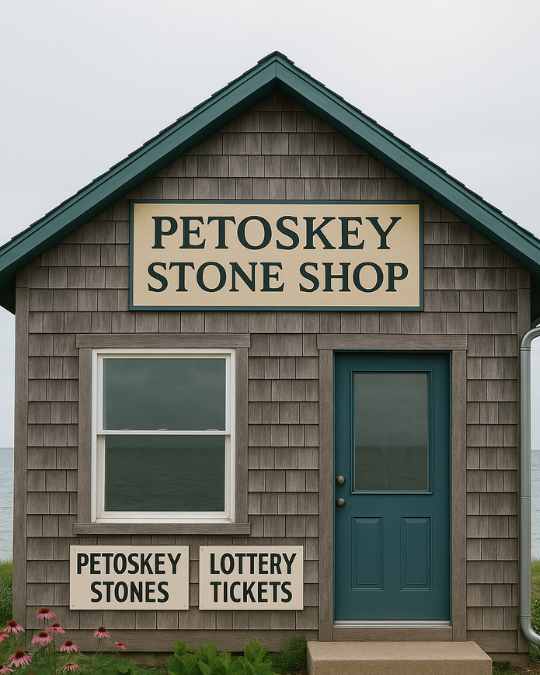 - Petoskey stone shops are popular tourist stops. While browsing, many visitors also stop at nearby licensed retailers for a ticket. Many locals swear the stones bring good fortune—maybe even for your ticket.